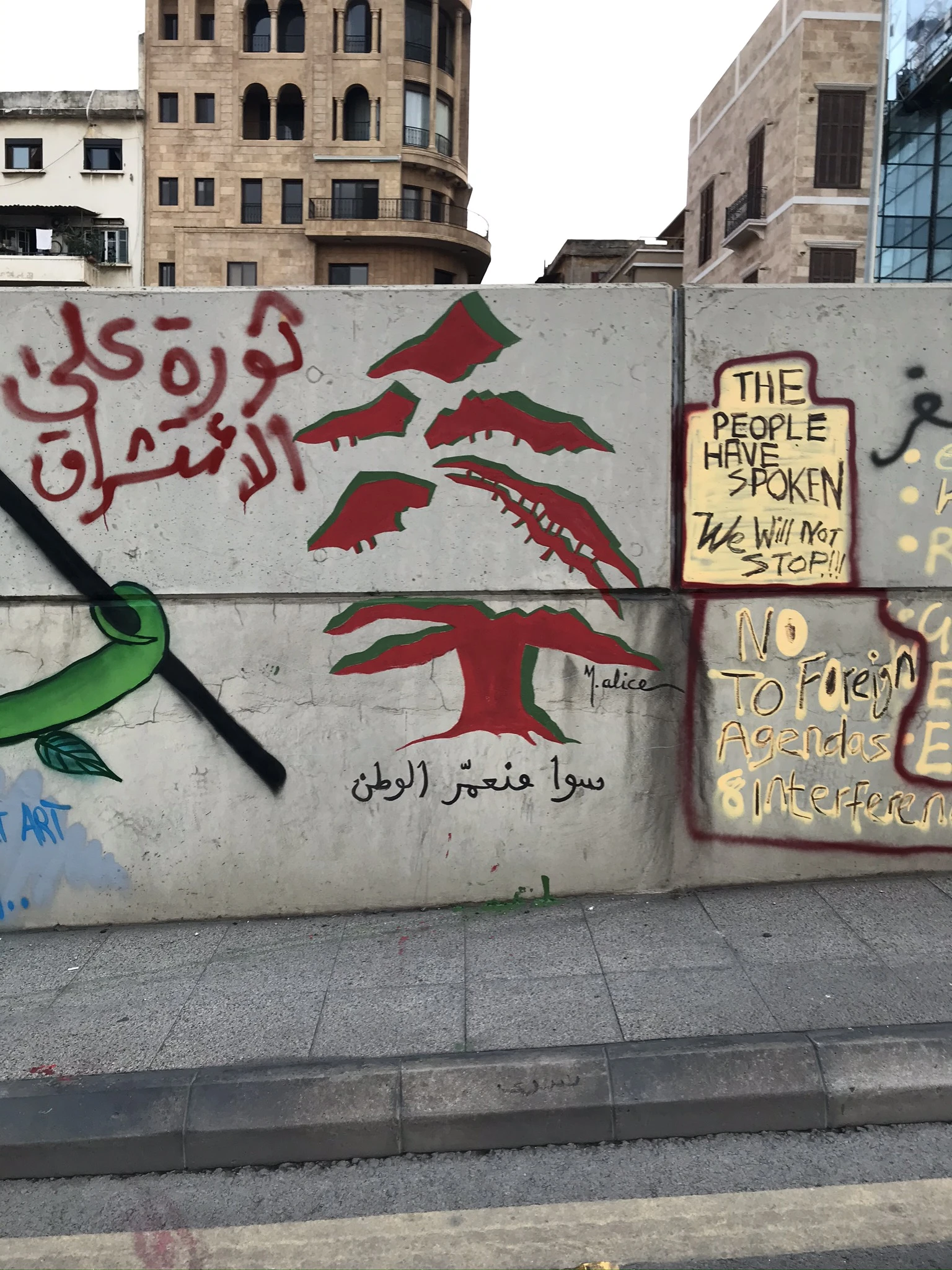 Alors que le pays s’embrase en octobre, Marie-Alice descend dans la rue avec ses concitoyens, et s’imprègne d’une nouvelle ambiance, celle de la jeunesse qui récupère ses espaces publics, ses rues et qui reprend espoir. Elle rencontre alors le collectif “The Art of Change” qui regroupe différents artistes bien décidés à peindre le changement. « J’allais très souvent aux manifestations, et un jour, une des artistes m’a envoyé un message, elle m’a dit : « Viens, on peint sur le Ring ! », alors je les ai rejoints et j’ai peint avec eux sur l’une des plus grandes artères de la capitale. »