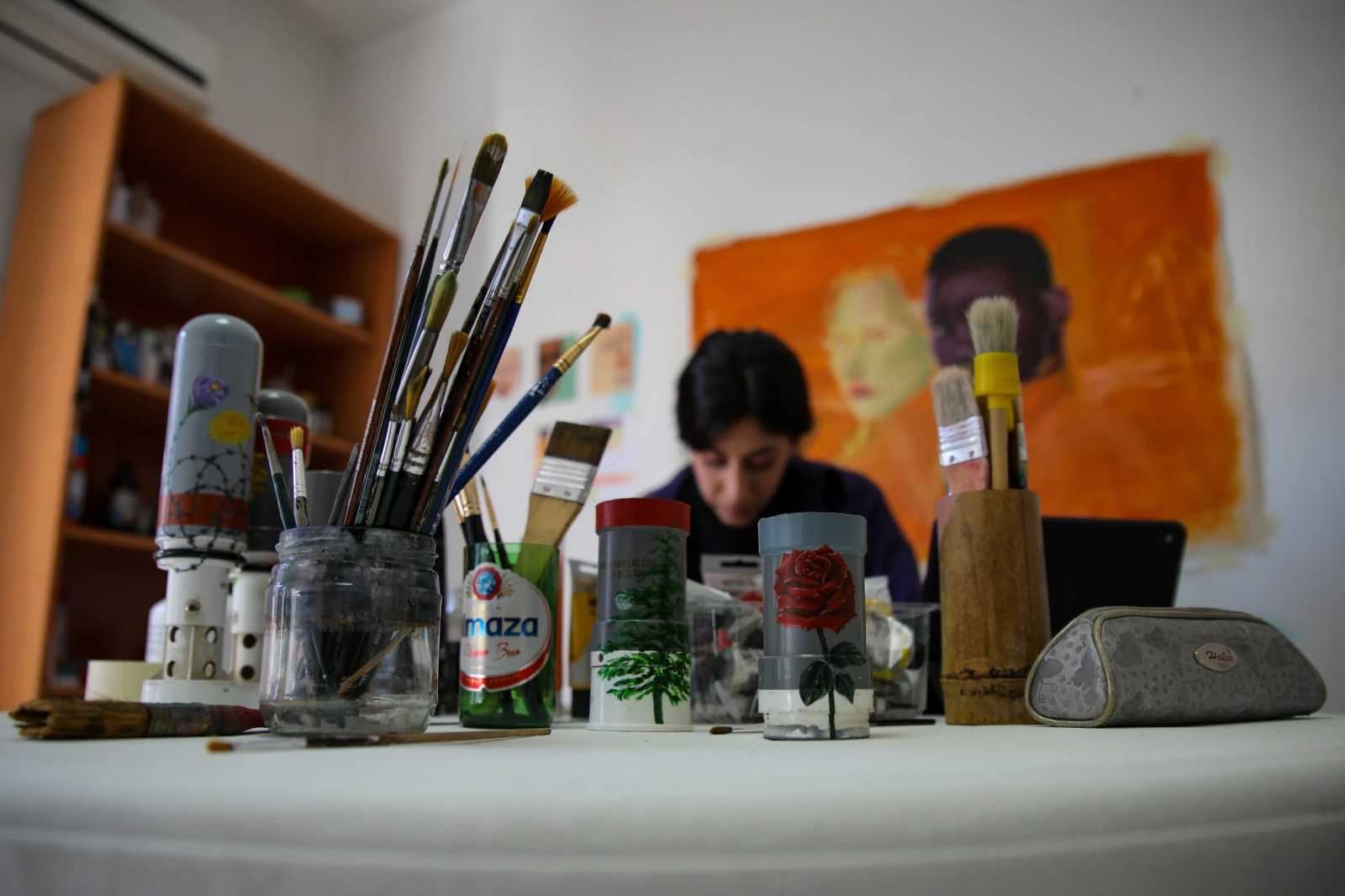 En rêvant à des jours meilleurs, équipée d’un téléphone portable dans une main – recouverte de tâches de peinture, et d’un pinceau dans l’autre : Marie-Alice est multitâche. Du haut de ses 28 ans, elle a décidé de s’adonner pleinement à la peinture, et c’est même le destin de son pays qui l’a poussée dans cette voie. Il n’y a pas de hasard.