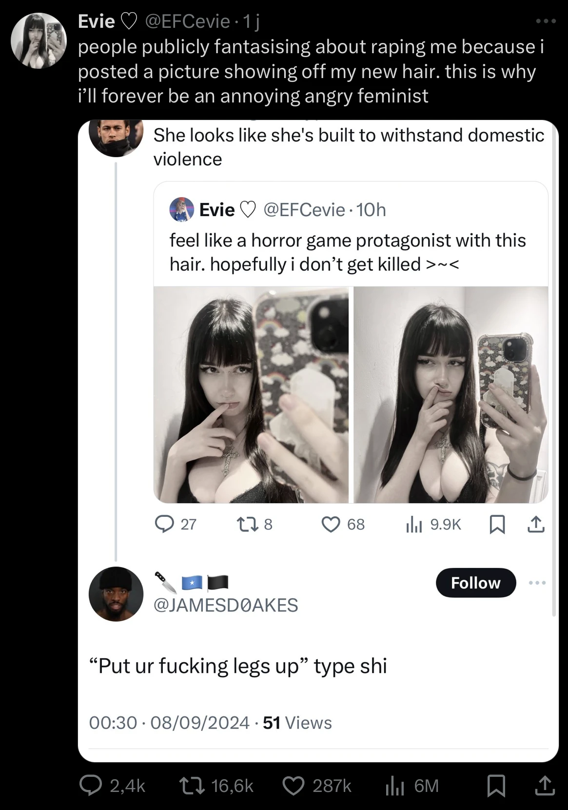 « Moi aussi, ça m’a choqué, mais ce n’est pas une raison pour faire des généralités aussi abjectes. La plupart des hommes sont gentils et bienveillants, ils ne sont pas TOUS mauvais », se défend-on de l’autre.