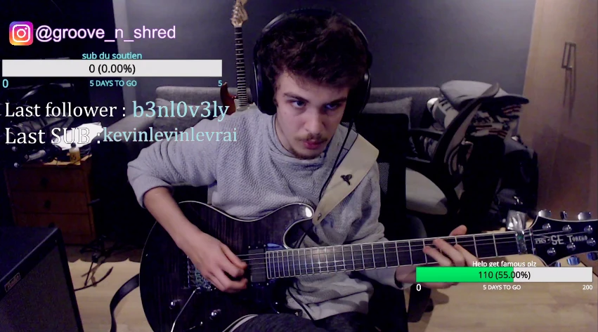 La plus grande foule devant laquelle Mamoun a démontré l’étendue de ses talents (nous vous méprenez pas, il est TRÈS talentueux) est de 16 personnes, lors d’un raid par une plus grande chaîne de musique. Il s’agit d’une pratique selon laquelle une chaîne Twitch qui finit sa session quotidienne invite ses spectateurs à aller regarder la diffusion en cours d’une plus petite chaîne. Les petites foules ne le dérangent pas, cependant. « C’est une manière pour moi de me faire connaître comme guitariste. De partager ce que je fais avec les gens. Twitch n’est pas une fin en soi. »