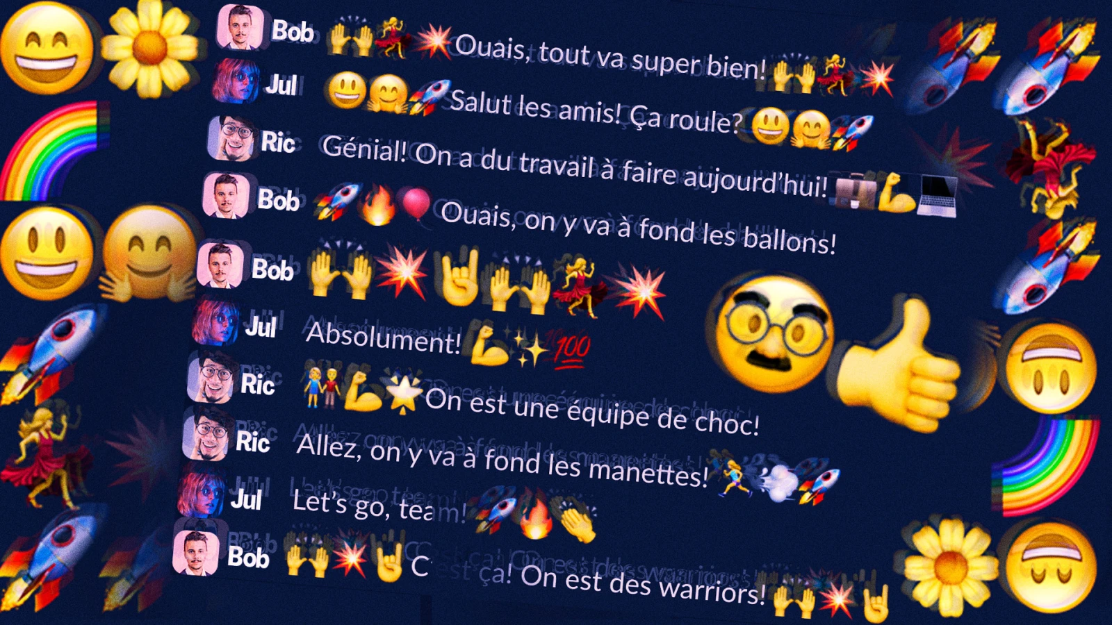 C’est pour ça que cette semaine, j’ai décidé de faire un petit test, soit de communiquer avec mes collègues sans emojis, ni émoticônes.