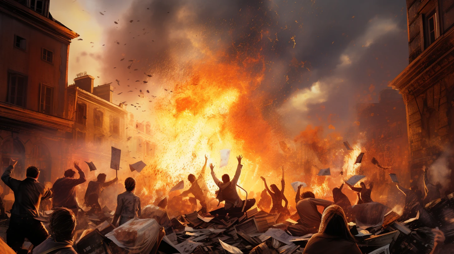 La parade militaire estivale a depuis longtemps été remplacée par un grand bûcher annuel, en commémoration des milliers de braseros qui se sont spontanément allumés dans tout le pays pour brûler les vêtements et les ouvrages contaminés au cours de la première année de l’invasion. Chaque citoyen.ne est désormais prié.e de foutre au feu une fois par an la moitié de sa penderie ou de sa bibliothèque, pour honorer les tonnes de chandails et de bouquins sacrifiés lors de ces événements tragiques.