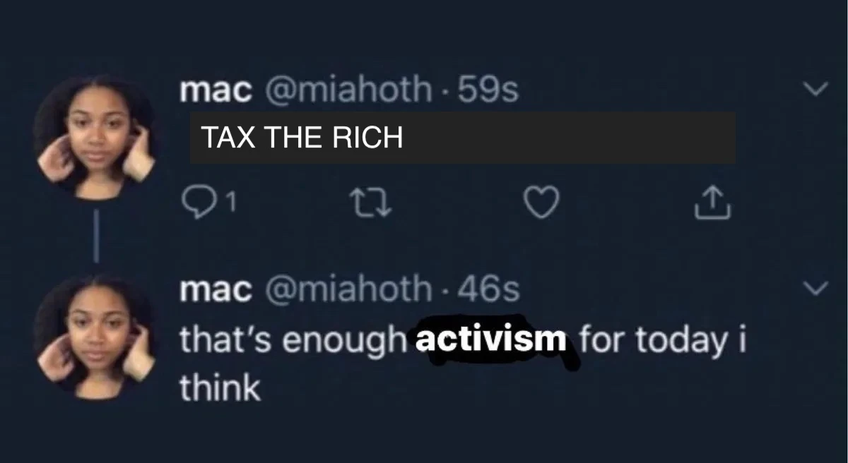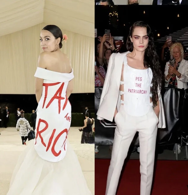 Dans l’édition 2021, cette performativité a été reprochée à la mannequin Cara Delevingne et sa veste made in Dior frappée de l’inscription « Peg the patriarchy ». Beaucoup y ont vu un féminisme dilué à l’eau. Il en va de même pour la politicienne Alexandra Ocasio-Cortez qui s’est présentée avec une robe Brother Vellies taguée des lettres « Tax the rich » à un MET Gala réunissant des millionnaires et où, sans invitation, l’entrée se paie 35,000$. « Ce n’est ni l’endroit, ni le lieu, ni l’heure. Et puis, de toutes façons, ces personnes-là s’en foutent », souligne Thibault. « C’est vraiment l’allégorie [du meme] ‘enough activism for today’. »