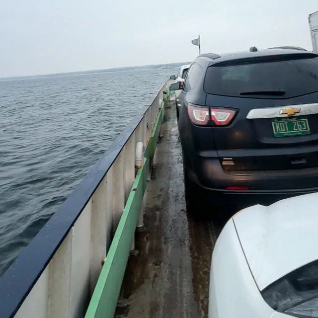 Sur le quai de la rue King, j’attends l’arrivée du traversier qui me transportera jusqu’au Vermont. La neige poudreuse fouette ma Kia Rondo, le chauffage roule à plein régime. Le lac Champlain est agité et le bateau tangue pas mal pendant les quinze minutes de la traversée.