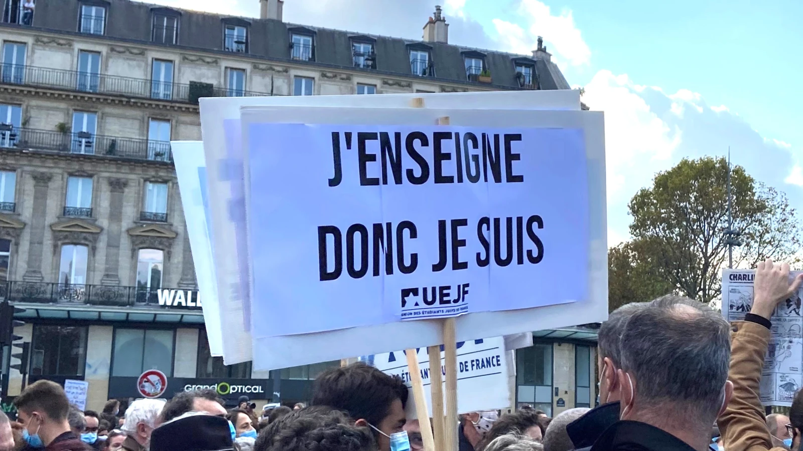 Un rassemblement était organisé ce dimanche 18 octobre 2020, à Paris, en hommage à Samuel Paty, le professeur de Conflans-Sainte-Honorine décapité le 16 octobre après avoir montré des caricatures de Mahomet à ses élèves. On a discuté avec celles et ceux qui marchaient.