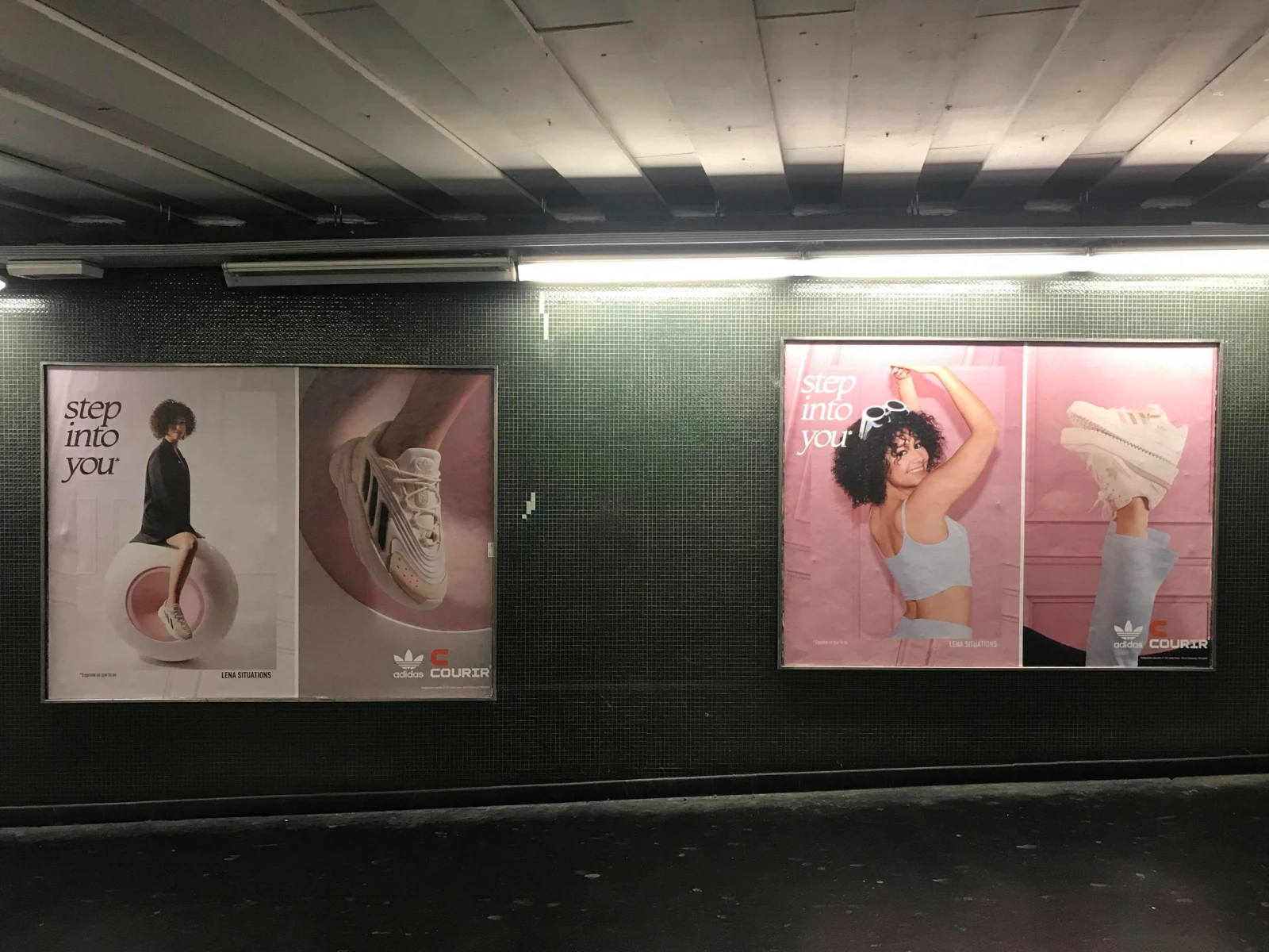 Cette frustration d’avoir le nom sur le bout de sa langue sans pouvoir le vocaliser ne m’a pas quittée. Sans compter que tout le long de mon trajet, ce même visage sponsorisé Adidas me suivait sous différentes formes: affichages d’abribus, tunnels de RER… Et puis, au détour d’une conversation, bingo: Léna Situations. Une énigme de résolue.