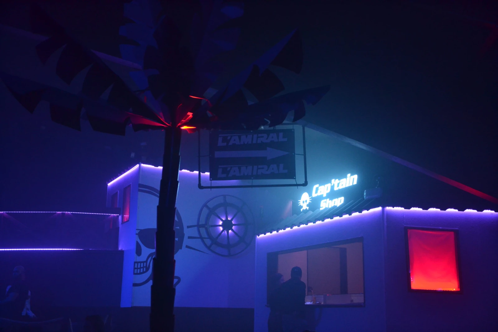 Arrivé à l’intérieur, on comprend enfin le nom. L’impressionnant décor qui fait la réputation de la discothèque est toujours là, rien ne semble avoir bougé depuis 1993. Un véritable chalutier de dix-neuf mètres de long trône en plein milieu de la salle. Un crevettier abrite la sono de 24 000 watts et les platines du DJ. On trouve aussi des hublots, des manomètres en cuivre, des ponts suspendus en corde, et huit autres bateaux où logent les bars. Une vraie île au trésor. Le concept avait fait la Une du journal local. « Que du vrai, du dur, ramené de la mer ! », annonçait-il, en promettant « de quoi faire chavirer les pirates des nuits blanches… ».