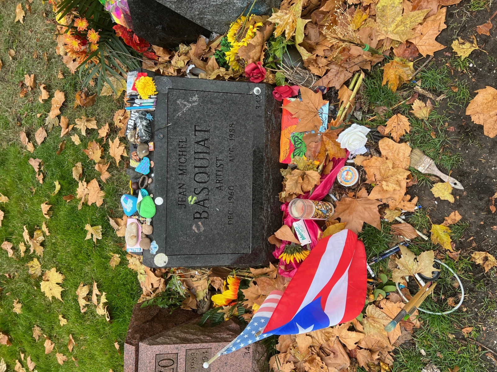 Pour clore mon séjour immersif, je me suis rendue au cimetière de Green-Wood, situé dans l’ouest de Brooklyn. Une fois devant sa tombe, couverte de dessins, de fleurs, de crayons et de petits pinceaux, je me suis dit que, bien que Basquiat nous ait quittés beaucoup trop jeune, sa créativité, sa fougue et son engagement lui survivent et continueront assurément d’en inspirer plus d’un.e.