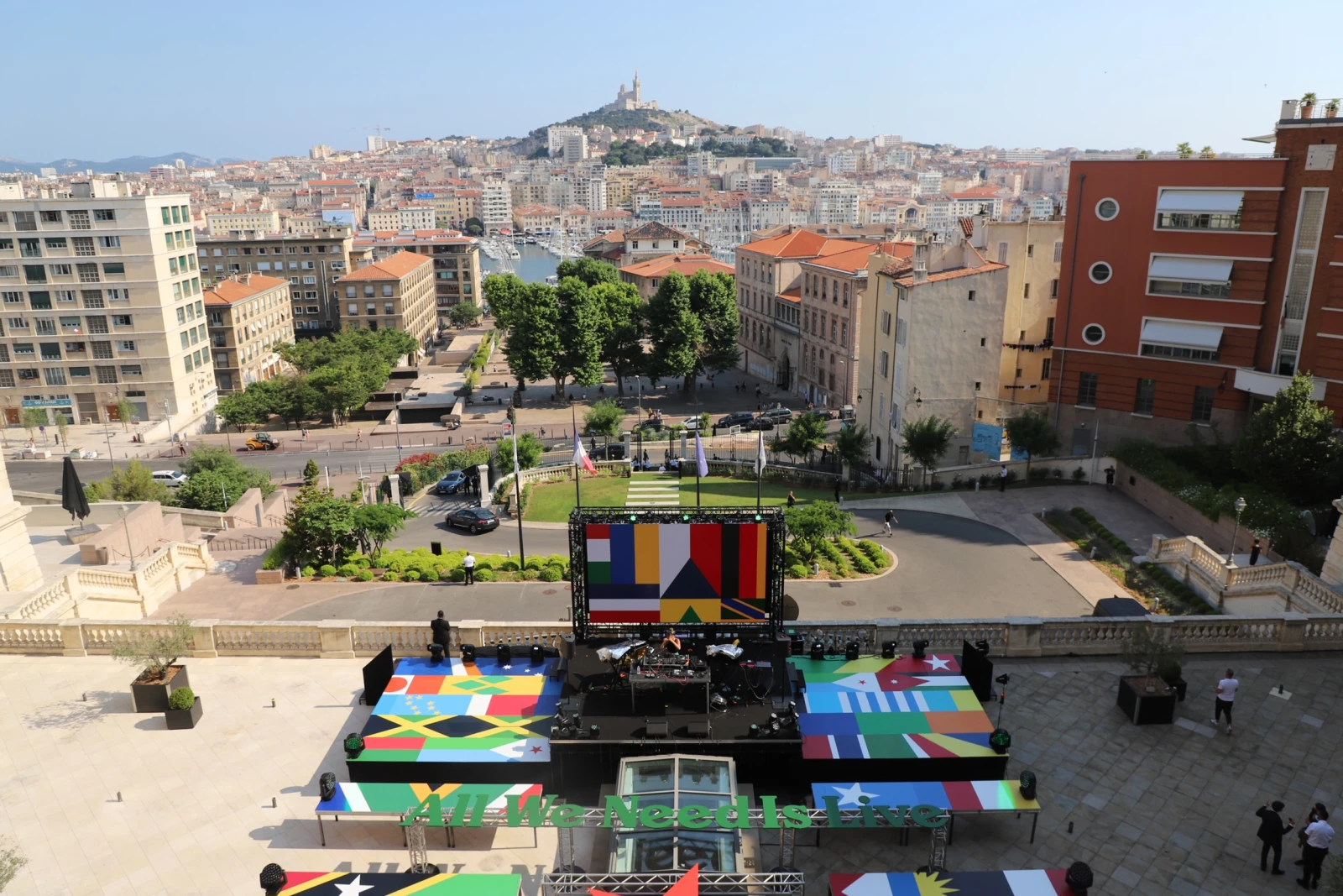 Commencer un concert par un second RDV à l’hôtel, c’est pas commun non plus. Parce que c’est à l’Intercontinental de Marseille, situé sur le Vieux-Port, pile en face de la Bonne Mère que se passe mon retour au live, pas dans un Zénith ou dans une autre salle de spectacle. L’événement, au concept unique, est justement nommé All We Need Is Live, organisé par Greenroom et l’Hôtel Dieu.