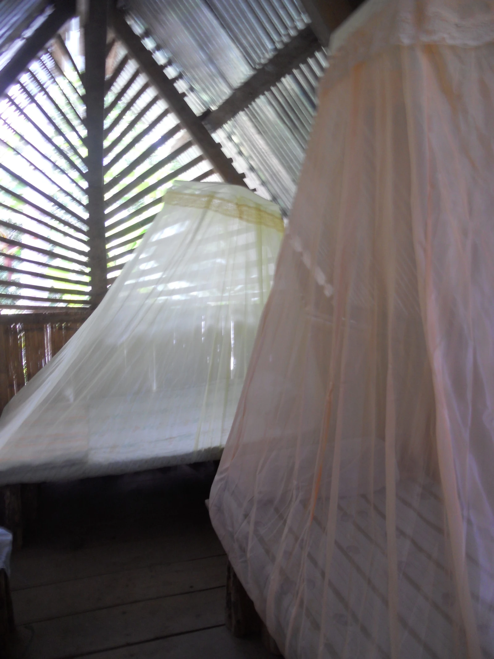 Les insectes, quant à eux, étaient présents malgré les volets de bois. L’Amazonie comporte d’ailleurs une très vaste variété d’insectes de toutes les tailles et de toutes les couleurs : des araignées multicolores aux gigantesques papillons, en passant par les criquets et les moustiques. Afin de nous permettre de dormir sur nos deux oreilles en présence d’autant d’insectes inconnus, nos installations comprenaient des lits à moustiquaire, semblables à des lits à baldaquin.